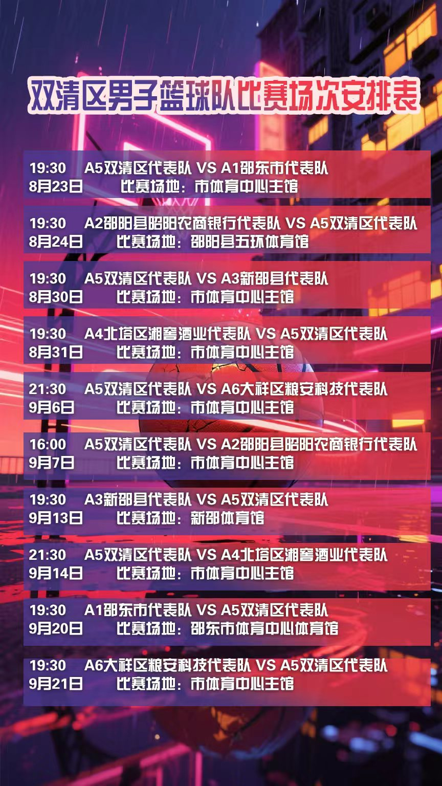 双清区男子篮球队比赛场次安排表(双清区文旅广体局 供图)
